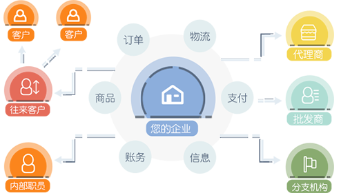 以管家婆软件为后台数据无缝交互,基于管家婆云服务器的B2B在线云订货平台,无需安装部署,帮助企业快速实现网上 订货商城建设、APP商城订货应用、微信商城订货应用。
